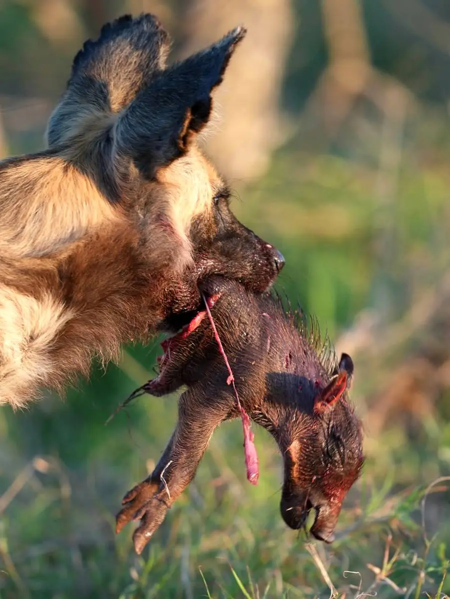 تصاویر؛ صحنه‌ای وحشتناک از شکار نوزادان گراز توسط سگ‌های وحشی