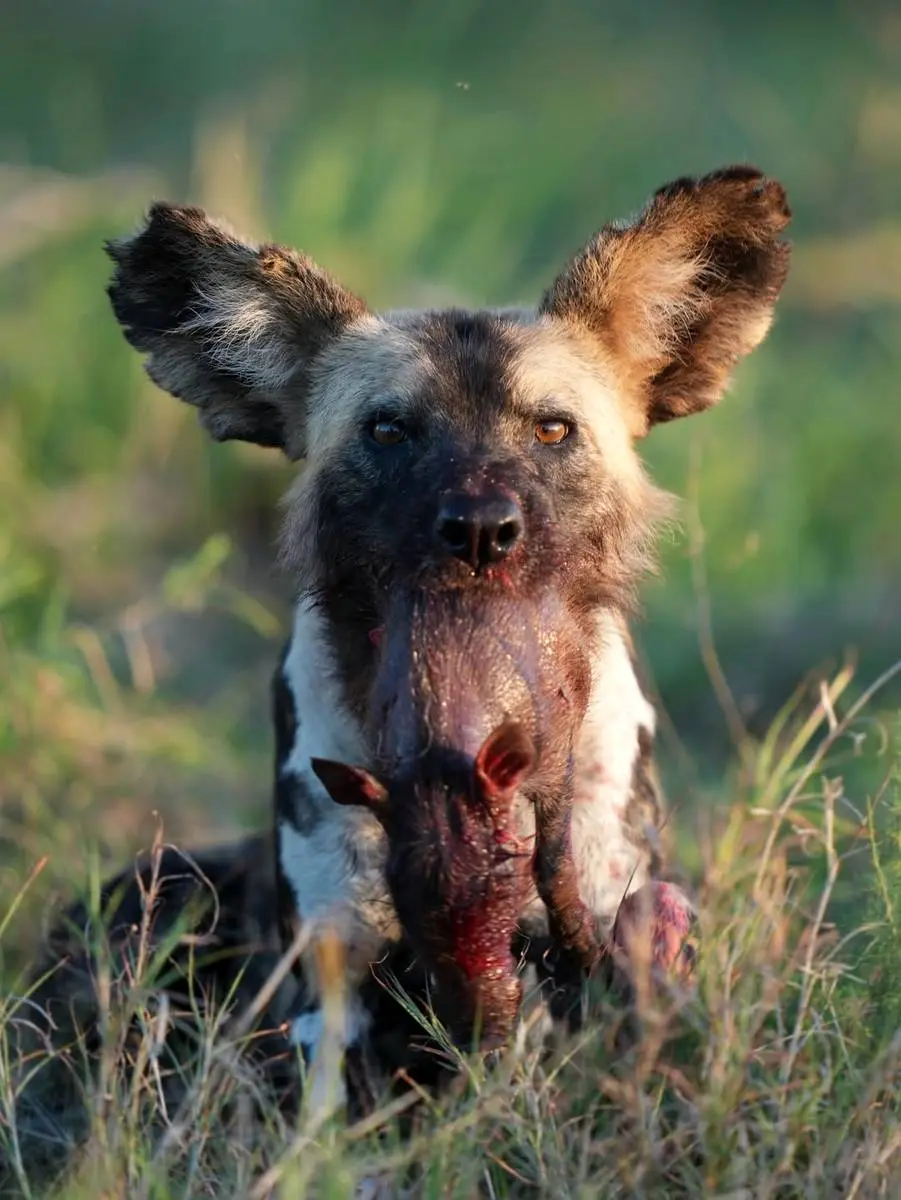 تصاویر منتشر شده گروهی از سگ‌های وحشی آفریقایی که لحظه‌ای خونین و تکان‌دهنده را رقم زده‌اند را نشان می‌دهد.
