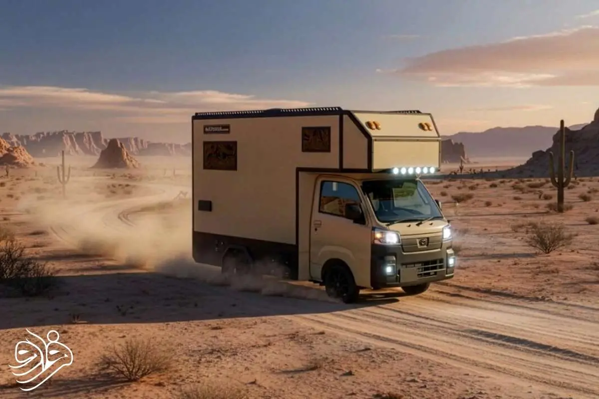 با Dune Rover، یا همان Katana Mini، حتی یک وانت جمع‌وجور دایهاتسو Hijet به یک اقامتگاه سیار مجهز تبدیل می‌شود؛ فضایی کوچک اما با امکانات کامل، از تخت‌های دونفره تا آشپزخانه و سیستم تهویه، همه در ابعادی جمع‌وجور و با طراحی هوشمندانه ژاپنی.
